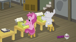Others can probably think of a lot of other G4 examples. But there doesn't seem to be a lot of this in G5. "Maretime Bay" is good, and "Bridlewood" and "Canterlogic" are okay, I guess. But magical sticky hooves have replaced the horsy mouth-handling of objects, and there seems to be a general downplaying of horse stuff. This seems like an aspect of a generally less playful approach to the world and the material. Or am I missing something?