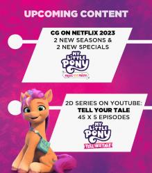 Some info up on Equestria Daily today about the content for next year. As seen in the image, we're getting MYM Chapters 3 and 4, two more specials and 45 more TYT. Enough new pony for the whole year. Sorry haters, but the G5 train is rolling forward yet.