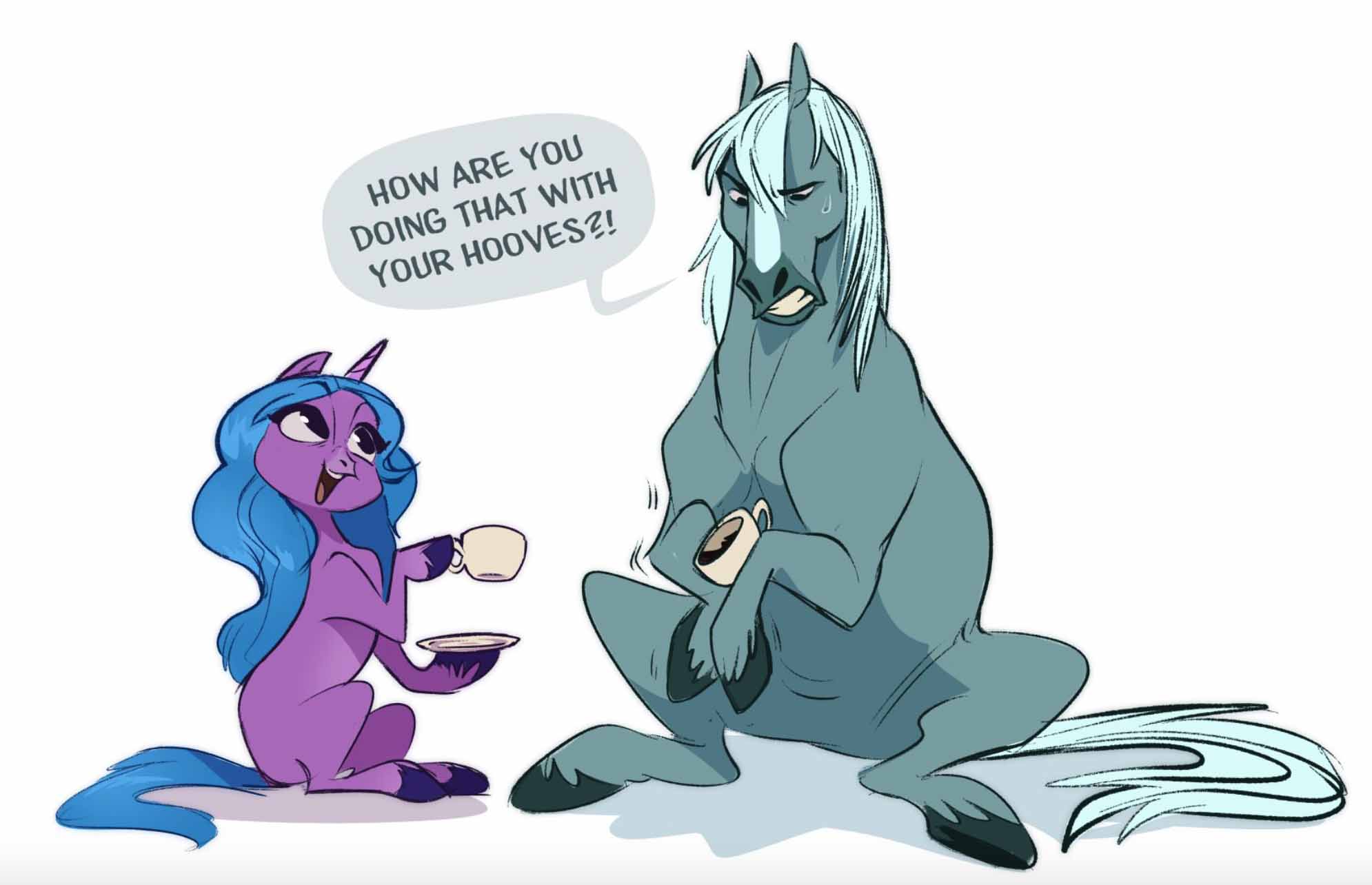 But you can't pick up a teacup with a hoof, or punch computer keys and cell-phone buttons with a hoof, or play a guitar with hooves. Give up on this, and you give up on horses.