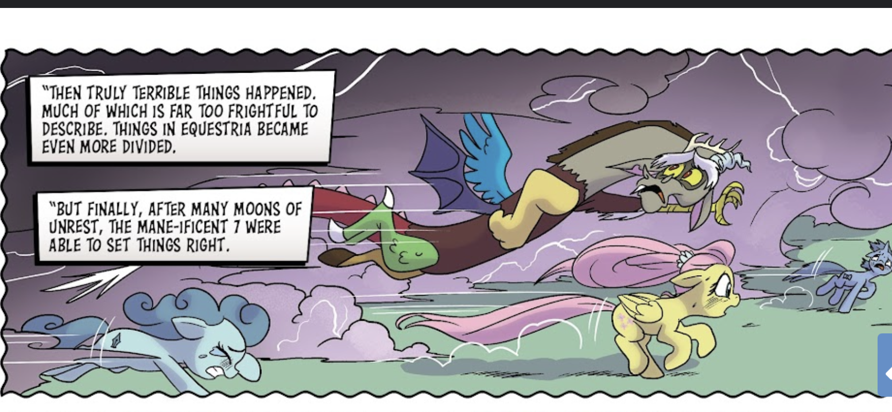 Another fun thing to think about is the Cakes. Their family isn't all the same tribal race. Were they split apart by these events? We also know from them that the tribe of a foal doesn't always match the tribe of the parents. So for the first few generations, was the occasional child exiled for not being born the same tribe? There's a fun fanfic for someone to write.