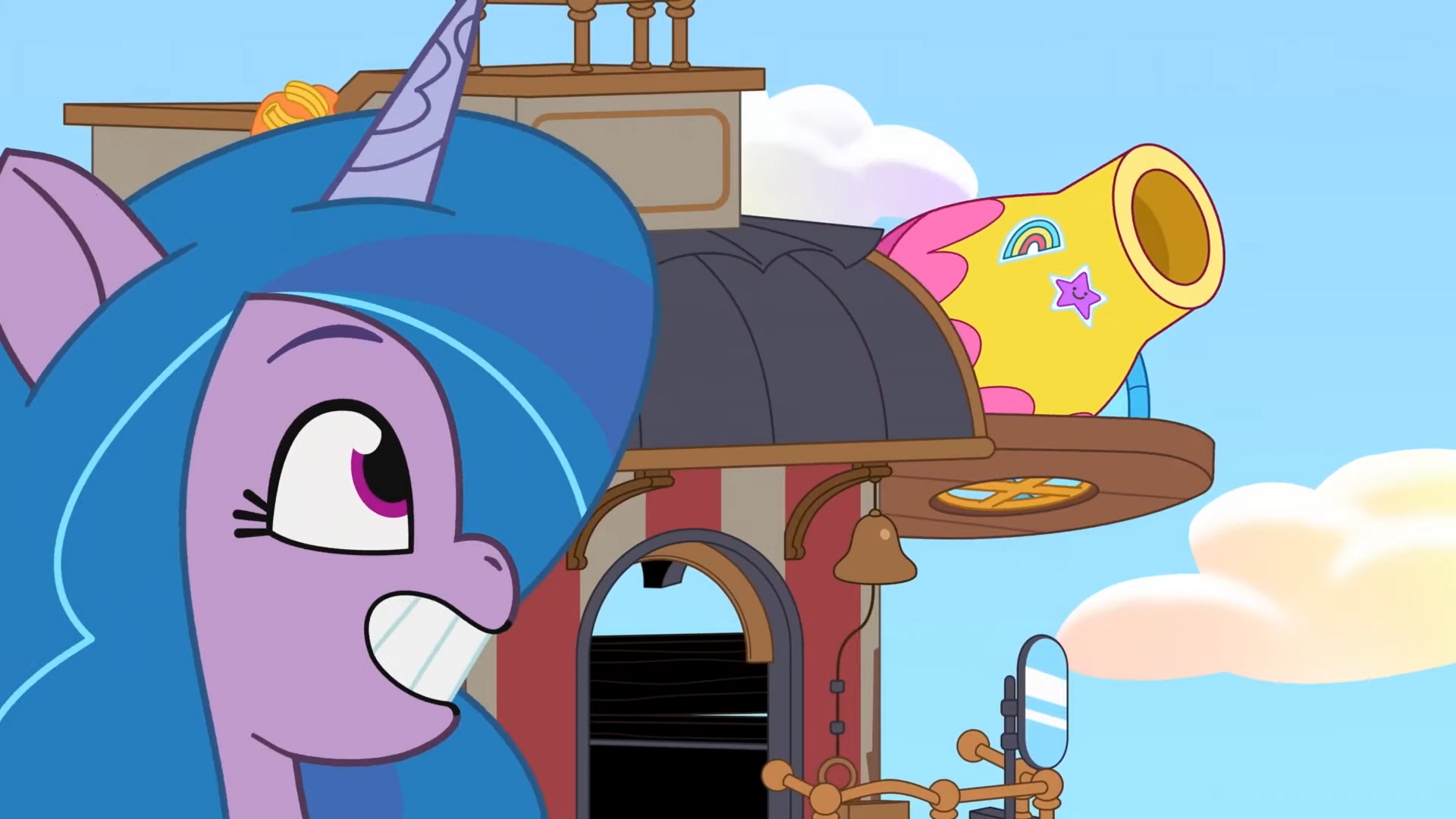 Izzy and Zip made it out of a rundown trolley. Or well, they were making it, but then they shoved Sunny's lantern into it and it just magic-ed this thing up. I also think Izzy was trying to weaponize it - pic. It only shot glitter though.